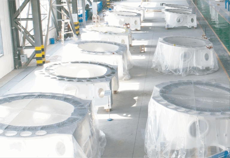 公司具有年生产风电 铸造轴系(主轴及轴承座)3600套、锻造主轴10000支、I-V类大型锻件20万吨的综合生产能力。