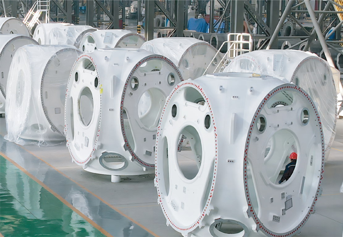轮毂是风力涡轮机的核心组件,主要负责三个关键功能:1.固定连接 -- 确保所有叶片牢固连接,以实现同步和稳定的旋转。2.能量传输 -- 将叶片捕获的风能转化为机械能,驱动发电机产生电能。3.承载与调节 -- 承担叶片产生的负载,并协同控制系统优化发电效率,防止强风下涡轮机过载。